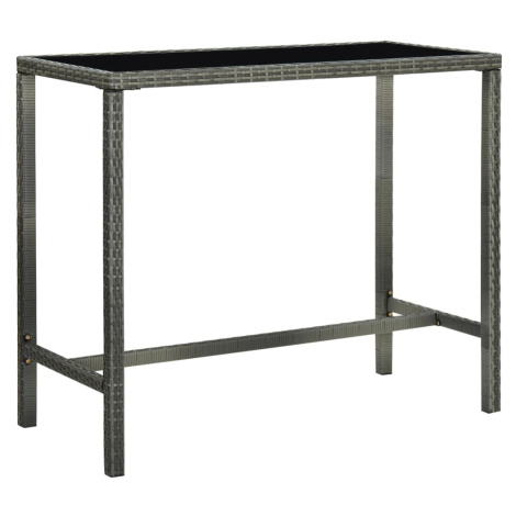 vidaXL Zahradní barový stůl šedý 130 x 60 x 110 cm polyratan a sklo