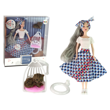 mamido Panenka pro děti Emily s šedými vlasy a kočičkou na houpačce