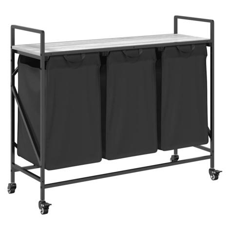 vidaXL Koš na prádlo se 3 přihrádkami a kolečky šedý sonoma