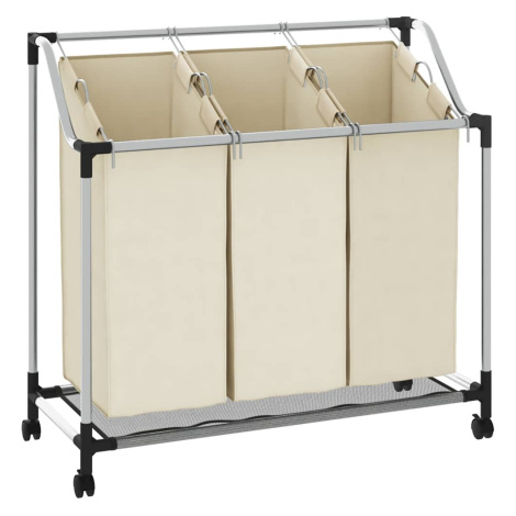 vidaXL Koš na třídění prádla se 3 vaky krémový ocel