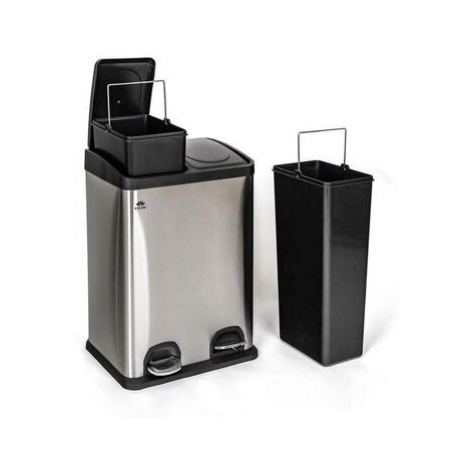 Moderní odpadkový koš Savery bude šikovným pomocníkem při třídění odpadu ve vaší domácnosti. Je v nerezovém provedení a disponuje 2 vyjímatelnými plastovými nádobami, každá o objemu 20 l, ve kterých můžete odpad jednoduše třídit. Každý z košů má nášlapný systém pro snadné a hygienické otevírání. Koš je snadno omyvatelný. Tloušťka stěny: 0,35 mm.
