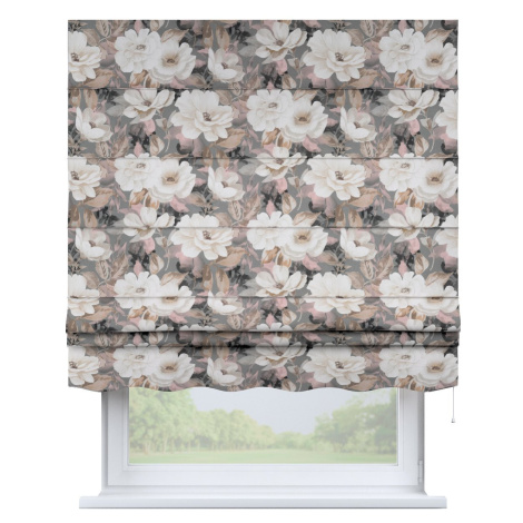 Dekoria Římská roleta Firenze, krémové a růžové květy na šedém podkladu, Gardenia, 142-13