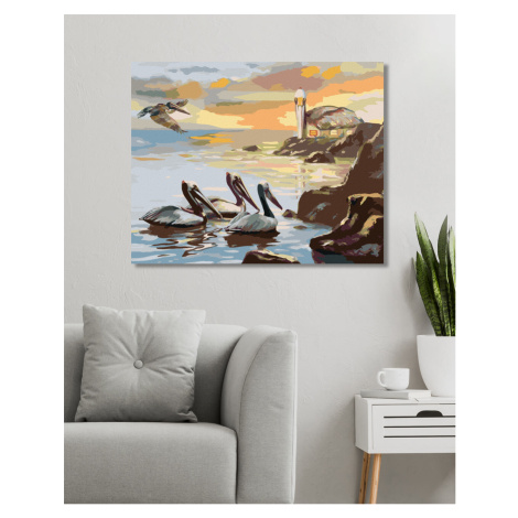 Diamantové malování - PELIKÁN A MOŘE (D. RUSTY RUST) Rozměr: 40x50 cm, Rámování: bez rámu a bez