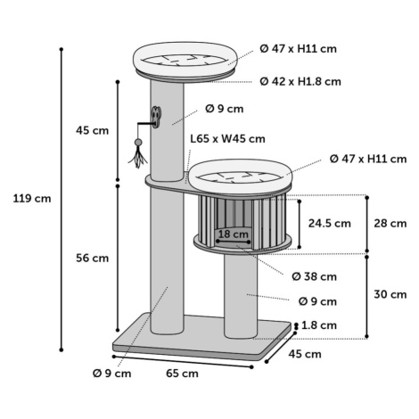 Flamingo Raisa 1 Brown je škrabadlo, které vaší kočce poskytne hodiny zábavy. Vybaveno papírovým škrabacím lanem (6 mm) a hračkou pro ještě větší zábavu. Plošiny a úkryt mají odnímatelné polštáře potažené měkkým plyšem pro pohodlný odpočinek. Darujte své kočce prostor pro hraní, škrábání a relaxaci s Flamingo Raisa 1 Brown. Škrabadlo je vybaveno papírovým škrabacím lanem (6 mm), které podporuje přirozené škrabací instinkty a zabraňuje poškození nábytku. Součástí je také hračka, která zaručí hodiny aktivní zábavy.