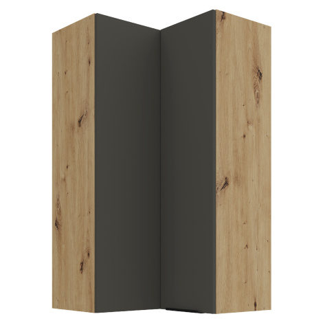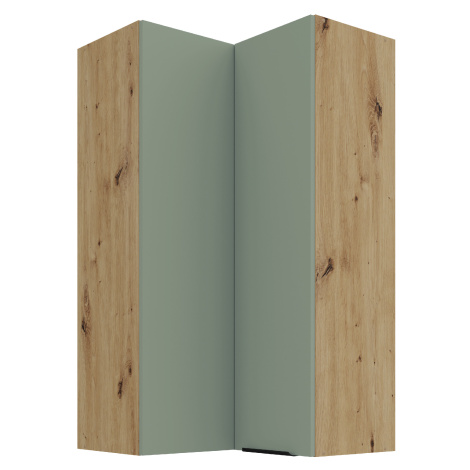 Horní rohová skříňka Aria 60x60 GN-108 2F (90°) Barva korpusu: Bílá, Barva dvířek: WH - Crystal white AFM,Horní rohová skříňka Aria 60x60 GN-108 2F (90°) Vlastnosti: Materiál Laminovaná dřevotřísková deska o síle 16 mm Zakončené hrany ABS hrana o síle 1 mm Anti Finger Print Jedná se o speciální povrchovou úpravu, kdy na povrchu dvířek / čel zásuvek nezůstávají otisky prstů. Úchyt Matný kovový černý úchyt Vnitřní barva Vnitřek skříně je bílý Vnitřní uspořádání Tři police Panty / Pojezdy Panty s tlumeným zavíráním • Barevné kombinace K dispozici je celkem 15 barevný kombinací - 3 barevné varianty korpusu a 5 barevných variant dvířek. Dub artisan korpus Bílá matná korpus Černá matná korpus BL - Black AFM dvířka / čela zásuvek SA - Aquamarine AFM dvířka / čela zásuvek TA - Sandgrau AFM dvířka / čela zásuvek GR - Graphite AFM dvířka / čela zásuvek WH - Crystal white AFM dvířka / čela zásuvek • Rozměry:Šířka: