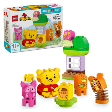Rodiče a malé děti si užijí kreativní hraní a učení hrou se stavebnicí LEGO® DUPLO® Disney (10457) Narozeninová oslava Medvídka Pú. Tato barevná vzdělávací stavebnice pomáhá malým stavitelům od 18 měsíců procvičovat základní dovednosti a zároveň si užívat nápadité hraní.Malé děti si zahrají na oslavu se 3 figurkami LEGO DUPLO: Medvídkem Pú, Tygrem a Prasátkem. Každá postava má oboustranný obličej s různými výrazy, takže děti si můžou vymýšlet nekonečné kreativní hry a nové příběhy. Tato zábavná také pomáhá rozvíjet sociální a dovednosti a empatii nejmenších dětí, které prozkoumají různé emoce během oslavy, od radosti z rozbalování dárků až po nepříjemný pocit po snědení spousty sladkostí!S touto stavebnicí si malé děti procvičí třídění barev při párování narozeninových dárků se zvířátky. Dárky jsou navíc očíslované, takže batolata se můžou dokonce začít učit počítat.Vzdělávací stavebnice, která batolatům pomáhá prohlubovat základní dovednosti• 3 figurky LEGO® DUPLO® Disney: Medvídek Pú, Tygr a Prasátko• Stavebnice pomáhá malým dětem učit se hrou při párování barevných dílků• Dárek pro malé děti, které si rády hrají na různé emoce• Sestavitelná hračka učí děti od 18 měsíců počítat a poslouží jako zábavný dárek• Stavebnice LEGO® DUPLO® jsou testovány a nabízí bezpečný herní zážitek• Dobrodružné hračky LEGO® DUPLO® podněcují rozvíjení sociálních dovedností a empatie• Součástí je dům na stromě, který měří přes 15 cm na výškuVhodné pro děti od 18 měsíců.