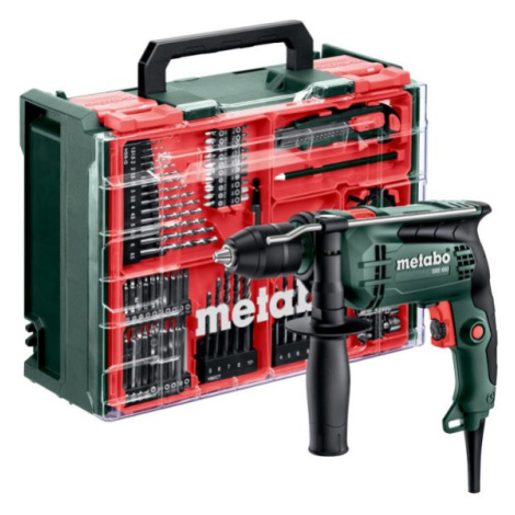 Příklepová vrtačka METABO SBE 650 SET s příslušenstvímPopis příklepové vrtačky METABO SBE 650:Elektronika Vario (V) k práci s odpovídajícími otáčkami Kolečko pro nastavení předvolby otáček Pravý/levý chod Vřeteno s vnitřním šestihranem pro šroubovací bity k práci bez upínacího pouzdraParametry příklepové vrtačky METABO SBE 650:Jmenovitý příkon: 650 WOdevzdaný výkon: 320 WMax. točivý moment: 10 NmMax. prům. vrtání zdiva: 16 mmMax. prům. vrtáku do oceli 13 mmMax. prům. vrtání měkkého dřeva: 30 ...