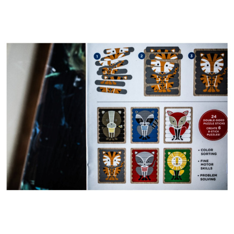 Rozvíjejte logické myšlení a koncentraci s puzzle MudpuppyPuzzle Mudpuppy jsou skvělým nástrojem pro rozvíjení logického myšlení a rozvíjení jemné motoriky u dětí. Jsou skvělou aktivitou na zkrácení volného času a zároveň podporují koncentraci a představivost dětí. Puzzle pro všechny věkové kategorie a zájmyMudpuppy nabízí puzzle pro všechny věkové kategorie a zájmy dětí. V nabídce jsou puzzle s motivy zvířat, vesmíru nebo jinými motivy. Díky této rozmanitosti si každé dítě najde puzzle přizpůsobené svým zájmům a schopnostem.Relaxujte s dětmi při skládání puzzleSkládání puzzle je skvělou aktivitou, která pomáhá dětem i rodičům relaxovat a užívat si společného času. Nabízené puzzle od značky Mudpuppy jsou skvělou volbou pro tuto činnost, protože jsou nejen kvalitní, ale také nabízejí poutavé výsledné obrázky, které motivují k jejich složení. Společné skládání puzzle může být příležitostí ke komunikaci a rozvoji rodinných vztahů. Navíc, díky tomu, že skládání puzzle podporuje jemnou motoriku a koncentraci, může pomoci dětem v jejich celkovém rozvoji. Skládání puzzle pomáhá rozvíjet představivost a logické myšlení. Rozvíjí jemné motorické dovednosti, koncentraci a představivostObsah balení 24 tyčinek, 3 oboustranné puzzle, ze kterých si složíte 6 obrázků, podložka na skládaníRozměr balení: 19cm x 23,5cm x 4cmMateriál: 100 % recyklovaný karton, vytištěno netoxickými inkoustyVěk: 3+Značka MudpuppyMudpuppy je značka, která se specializuje na výrobu kvalitních a bezpečných her, puzzle stavebnic a hraček pro děti.Výrobky Mudpuppy jsou navrženy tak, aby potěšily děti svými živými barvami a designem. Zároveň podporují rozvoj dětské představivosti a přinášejí celé rodině společné zážitky. Značka Mudpuppy dodržuje evropské normy a je tak zárukou kvalitních a bezpečných her, puzzle stavebnic a hraček pro děti.