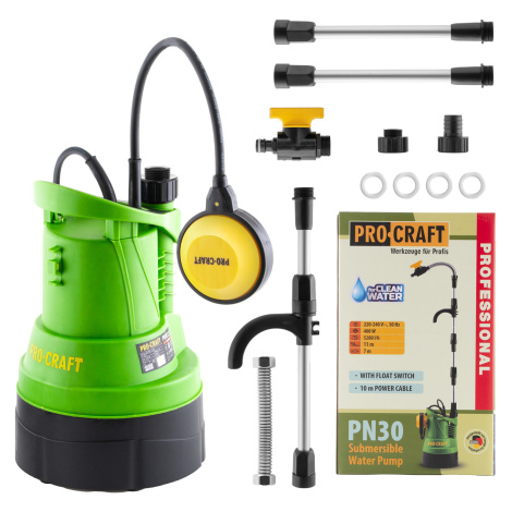 Čerpadlo do sudu Procraft PN30 je kompaktní a výkonné zařízení určené k čerpání vody ze sudů a nádrží. Díky nastavitelnému plovákovému spínači umožňuje automatický provoz v závislosti na výšce hladiny vody. Je vybaveno výstupní trubkou s uzavíracím ventilem a čepem pro připojení rychlospojky, což zajišťuje snadnou manipulaci a pohodlné použití.Klíčové vlastnosti: Automatický provoz Plovákový spínač pro automatické zapnutí a vypnutí čerpadla podle hladiny vody. Vysoký výkon Výkon 400 W umožňuje čerpání až 5200 l/h s maximální dopravní výškou 11 m. Celková výška čerpadla 140 cm s možností ponoření až do hloubky 7 m. Snadné připojení Možnost připojení hadice přes rychlospojku nebo závit G 3/4". Odolná konstrukce Krytí IPX8 zajišťuje ochranu proti trvalému ponoření do vody. Dlouhý napájecí kabel Délka 10 m umožňuje flexibilní umístění čerpadla.Technické parametry:Napětí: 220-240 VFrekvence: 50 HzVýkon: 400 WMaximální průtok: 5200 l/hMaximální výtlak: 11 mMaximální ponorná hloubka: 7 mPrůměr trubky: 1"Možnost připojení rychlospojky: AnoTřída ochrany: IPX8Maximální teplota vody: 35 °CDélka napájecího kabelu: 10 mHmotnost (včetně příslušenství): 4,3 kgČerpadlo Procraft PN30 je ideální volbou pro zavlažování zahrady, přečerpávání vody ze sudů nebo nádrží a další domácí či zahradní použití. Jeho automatický provoz a snadná instalace z něj činí praktického pomocníka pro každodenní práci s vodou.