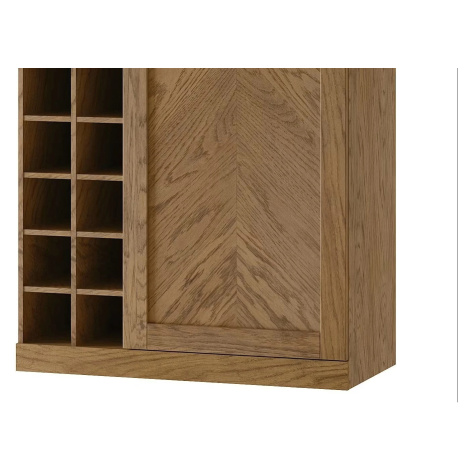Bar je navržen tak, aby nabídnul dostatek místa pro vaše oblíbené nápoje. Skrytá část za dveřmi ukrývá úložný prostor pro vše, co potřebujete mít po ruce, zatímco otevřené police poskytují ideální místo pro lahve vína nebo sklenice. Dveře, vybavené funkcí soft-close, zajistí tiché a bezpečné zavírání, což zaručuje dlouhodobý komfort užívání.